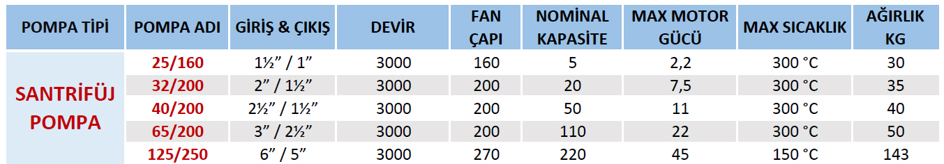 İmalatımız olan Santrifüj Pompalar; Kızgın yağ, sıcak ve soğuk su transferi için kullanılmaktadır.